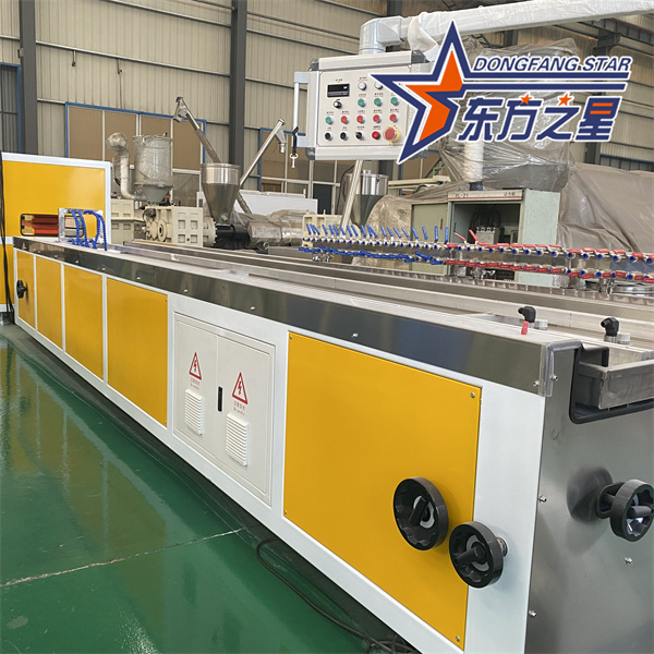 PVC træ-plast kompositpaneludstyr er en automatiseret produktionslinje, der bruger PVC-harpiks og træpulver/bambuspulver som råmateriale. Gennem blanding, smelteekstrudering og vakuumformningsprocesser producerer den trækornede kompositpaneler. Kernekomponenterne omfatter en konisk dobbeltskrueekstruder, specialiserede forme, et vakuumformebord, en trækmaskine og en skæremaskine.