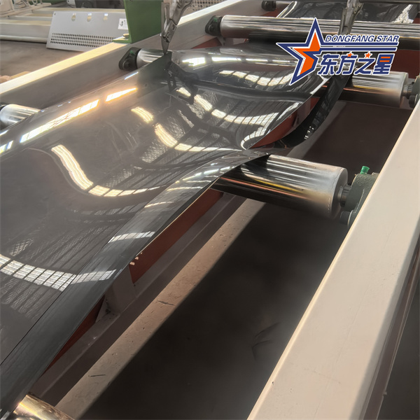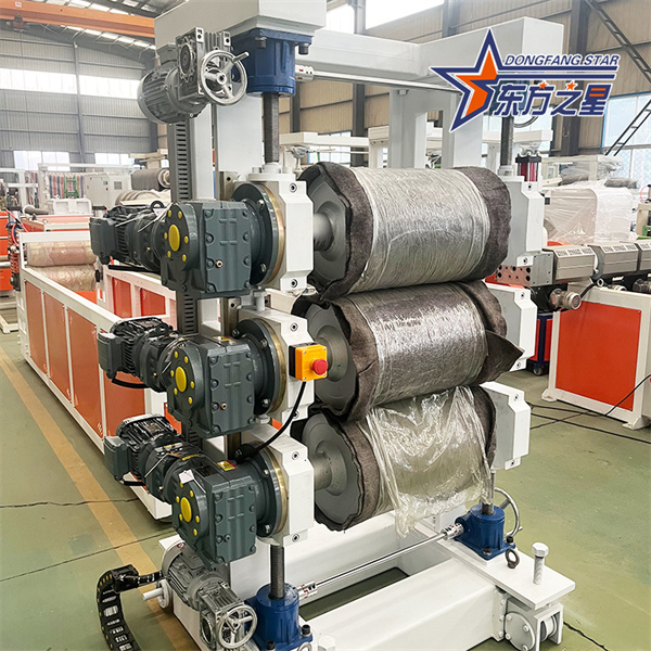 Formning og afkøling: En trevalskalander udfører tykkelsesformning og overfladebehandling på pladerne. Kølesystemet afkøler hurtigt arkene til under 60 ℃ for at forhindre deformation.