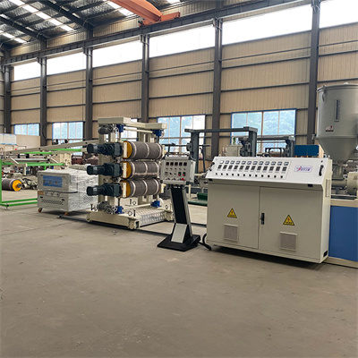 De tørrede PS-partikler transporteres til ekstrudertragten gennem en automatisk tilførselsanordning. Ekstrudersneglen smelter gradvist de faste PS-partikler til en ensartet smelte gennem rotation og ekstern opvarmning. Smelten skubbes til T-dysen (flad strømningskanal) for foreløbig at bestemme bredden af arket. Smeltefilmen kommer ind i trevalskalanderen og størkner hurtigt og dannes. Formpladen trækkes med ensartet hastighed af trækmaskinen, og graterne fjernes af trimmemaskinen. Til sidst rulles den ind i en almindelig spole af oprulleren.
