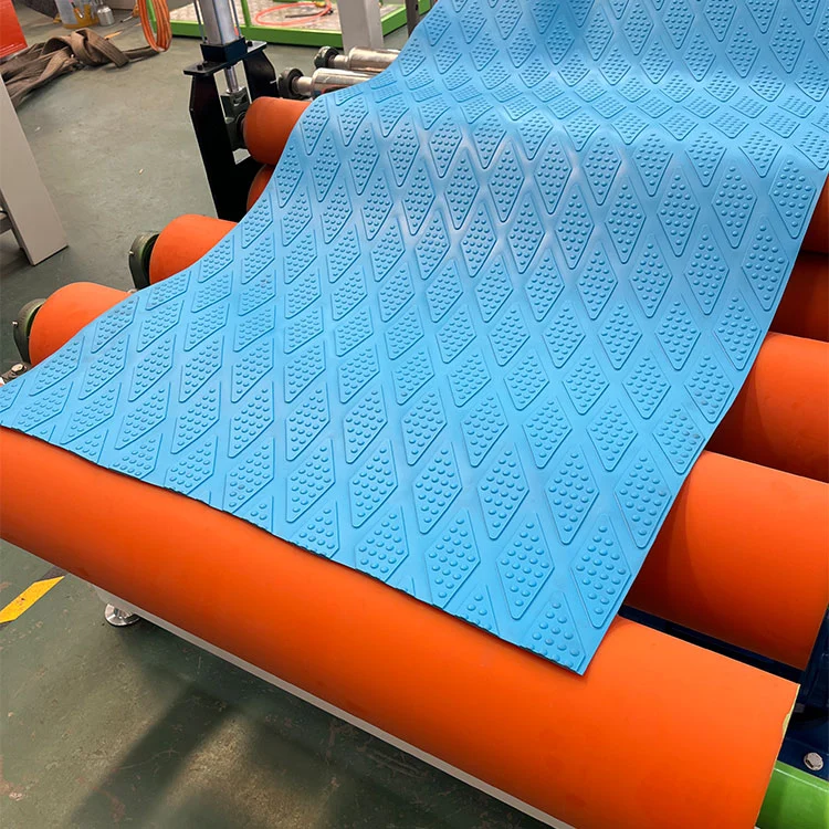 Hvis du vil øge friktionskoefficienten, er det den bedste løsning at tilføje tekstur! TPE TPV TPU TPR Anti-Slip Mat Extruder Machine Produceret af vores fabrik ikke kun har skildpadde skaltekstur, men også diamantstruktur, appelsinskaltekstur osv. Hvordan produceres flere strukturer på en produktionslinje? Vi behøver kun at udskifte rullen i den midterste position for at imødekomme behovene i forskellige mønstre, så enkle som at ændre en mobiltelefonkasse.